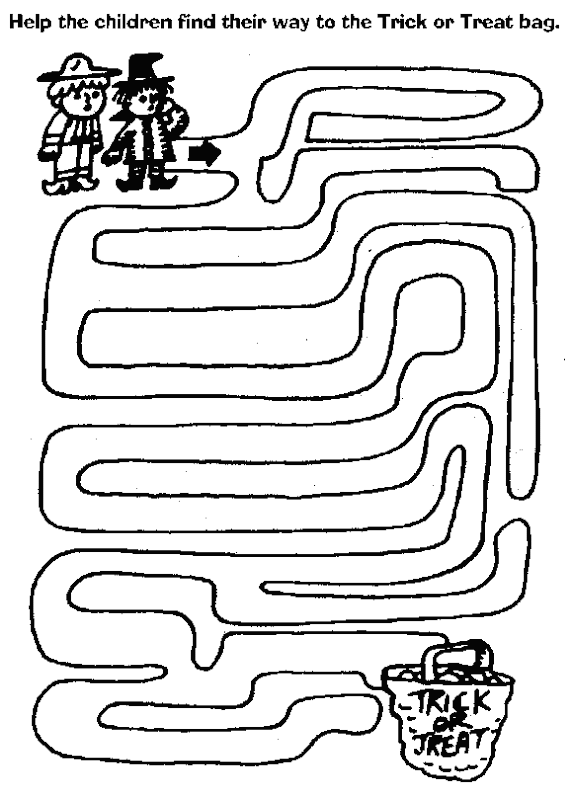 laberinto halloween, ayuda a los niños a encontrar su bolsa del trauco o trato